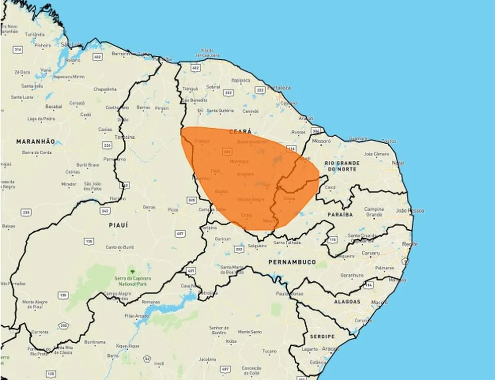 O aviso é de perigo (alerta laranja), o segundo na escala de três graus de severidade.