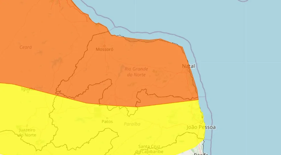 Além do Rio Grande do Norte, o alerta laranja engloba cidades do Maranhão, Piauí, Ceará e Pará.