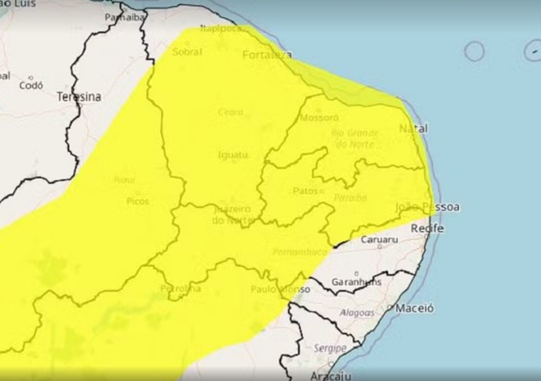 O Instituto Nacional de Meteorologia (Inmet) publicou um alerta de vendaval para todas as cidades do Rio Grande do Norte. O aviso vai até 18h deste sábado (13).