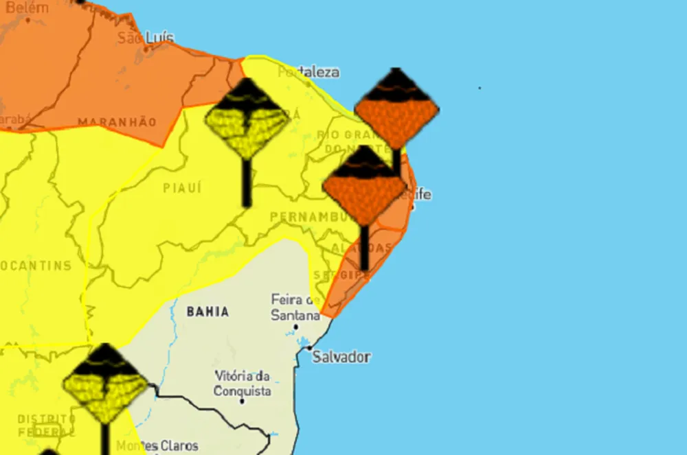 O Instituto Nacional de Meteorologia (Inmet) emitiu dois alertas de chuvas intensas que abrangem todo o Rio Grande do Norte, nesta segunda-feira (6).