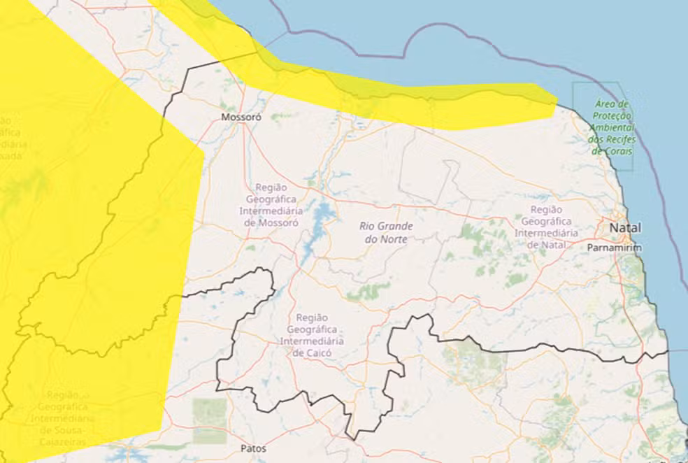 O alerta abrange 42 cidades potiguares, a maioria localizada na região do Alto Oeste: