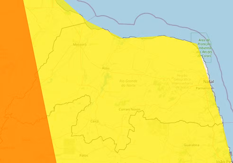 O alerta é válido para todos os municípios do RN, inclusive os que também estão sob alerta laranja.