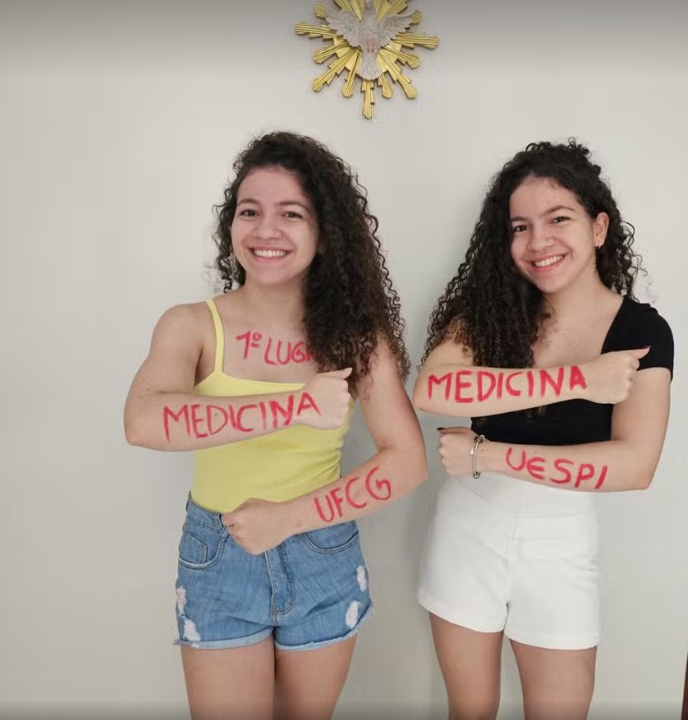 As irmãs gêmeas Ana Caroline Silva de Queiroz e Ana Luiza Silva de Queiroz, de 21 anos, naturais de Doutor Severiano, no Rio Grande do Norte, conquistaram juntas o sonho de serem aprovadas no curso de Medicina após três anos de estudos.