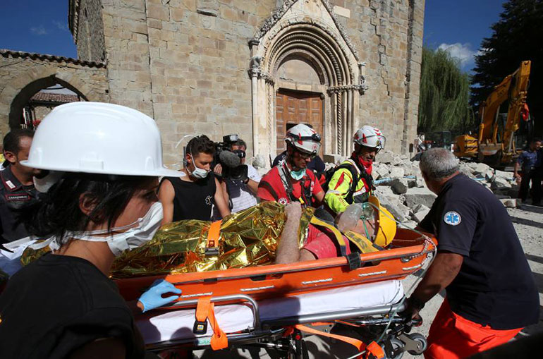 Os feridos somam 387 – que receberam atendimento nos hospitais de Lazio, Úmbria e Marcas, mas esse número pode ser maior já que há verificações em curso sobre feridos em hospitais menores. Até o momento, as equipes de busca e salvamento conseguiram resgatar com vida dos escombros 238 pessoas nas três cidades mais atingidas pelo sismo.