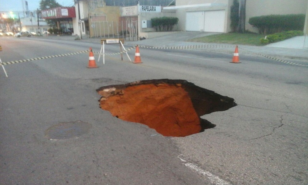 A cratera se abriu às 15h20 e seguiu crescendo na medida em que a água dos canos de abastecimento da Caern jorravam no seu interior. No final da tarde, o buraco já havia dobrado de tamanho e toda a pista havia sido interditada pelas equipes da STTU e Defesa Civil.