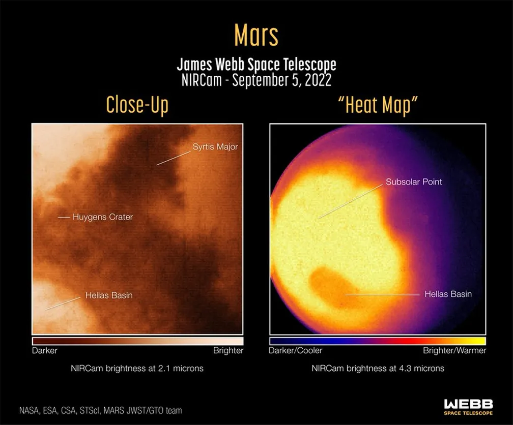 “O Webb foi construído para detectar luz fraca de galáxias distantes, mas Marte é extremamente brilhante! Por isso, técnicas especiais foram usadas para evitar que o Webb fosse inundado com luz”, afirmou a agência.