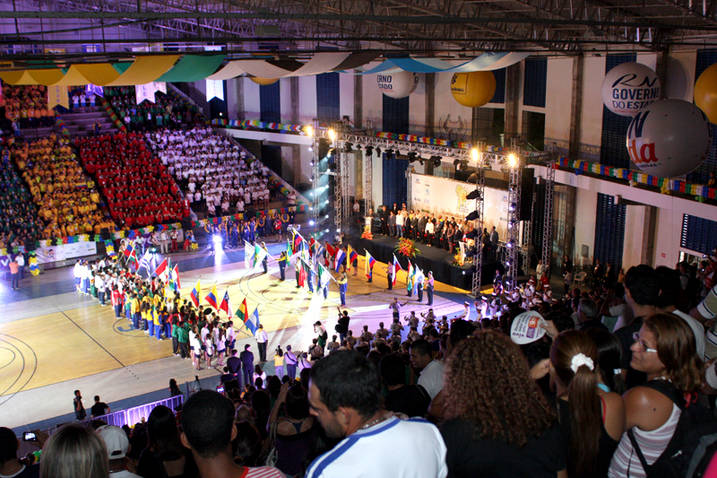 Uma bonita festa com as presenças das delegações dos países do continente marcou a abertura oficial da 18ª edição dos Jogos Sul-Americanos Escolares de 2012 na noite de ontem em Natal. A solenidade ocorreu no ginásio central do Campus Universitário, na Universidade Federal do RN.