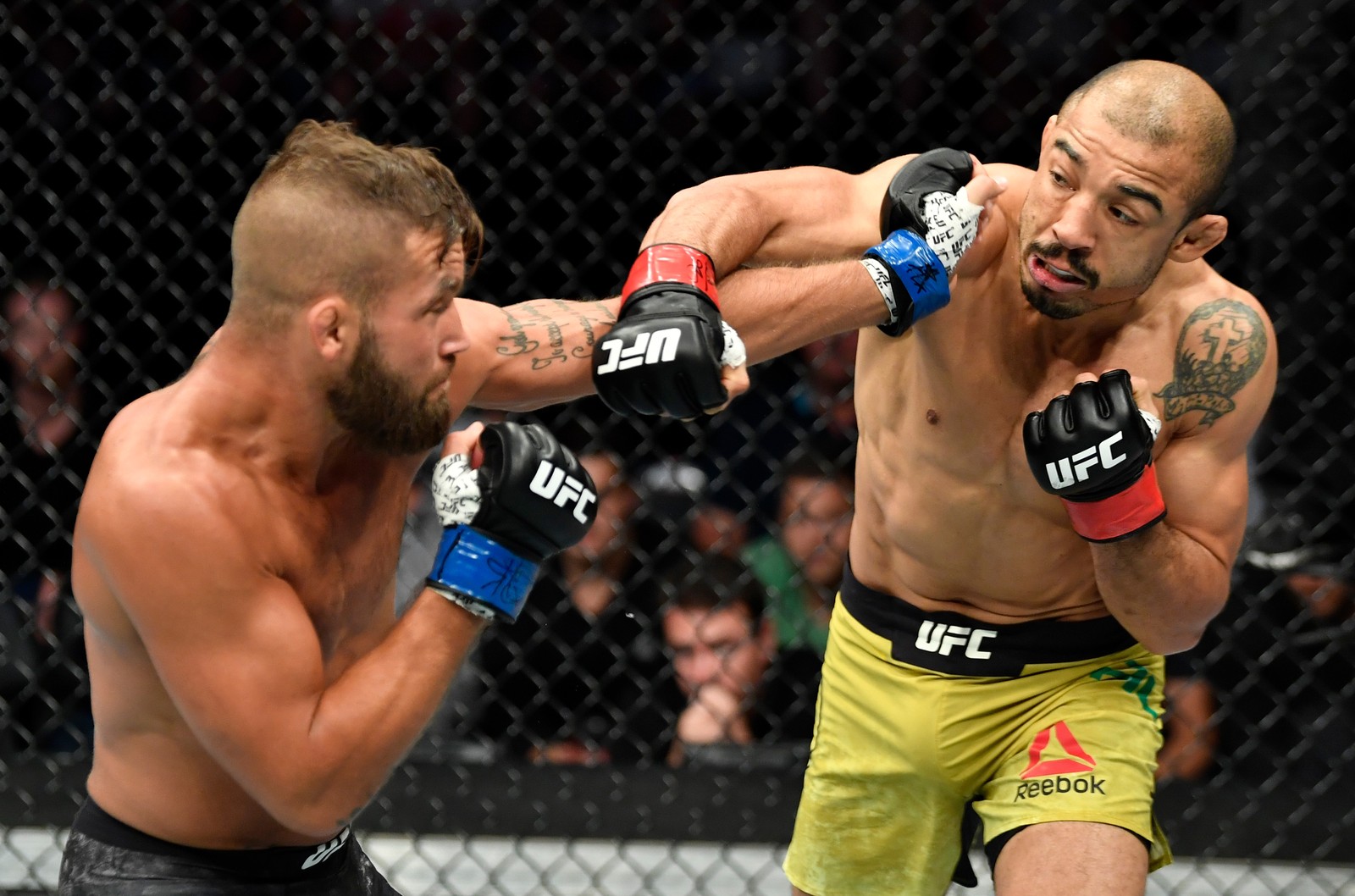 A amarga e inédita sequência de duas derrotas, em 14 anos de carreira profissional no MMA, fez a dúvida pairar sobre a cabeça de José Aldo. A confiança não voltou a ser a mesma após o fatídico nocaute sofrido para Conor McGregor, aos 13 segundos de luta, em 2015. Aos 31 anos de idade, consagrado como um dos melhores da história e resolvido financeiramente, o ex-campeão do peso-pena precisava se reinventar. E foi o que ele fez nesse sábado (28), no UFC Calgary, no Canadá, país que serviu de palco no início da sua trajetória no Ultimate, em 2011. Na cidade, agora local do seu recomeço, o peso-pena espantou a má fase após dois anos sem vitória no octógono. E foi da melhor forma: bateu Jeremy Stephens por nocaute técnico aos 4m19s do primeiro round. Emocionado, comemorou o triunfo como se valesse o título. E, para ele, o significado talvez tenha sido realmente maior.