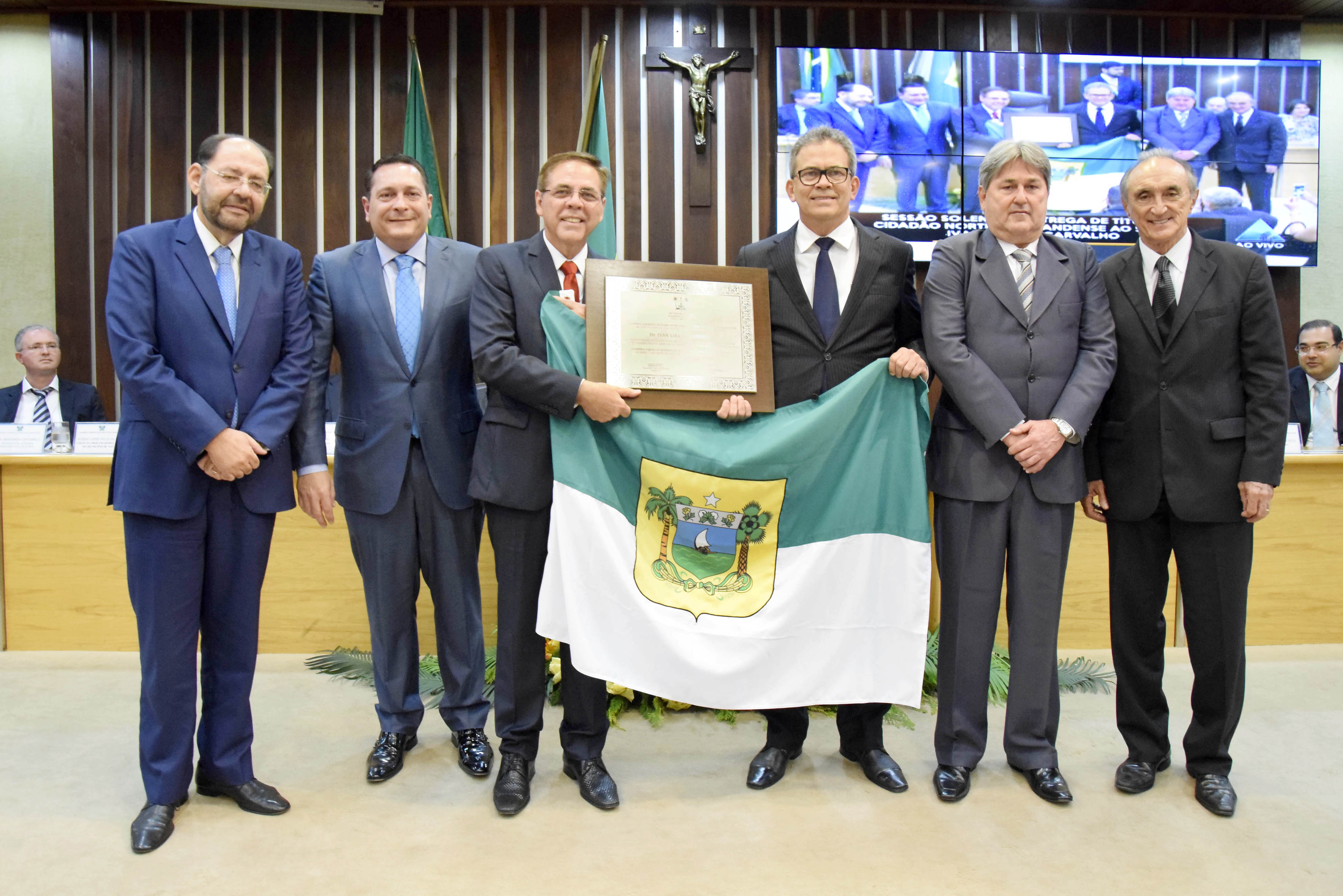 Nós que fazemos o Blog Ponto de Vista parabenizamos o nosso articulista e juiz federal Ivan Lira de Carvalho, que é o mais novo cidadão norte-rio-grandense. A honraria foi entregue na ultima sexta-feira (19), durante sessão solene com o plenário e galerias da Assembleia Legislativa lotados. Autoridades políticas e do meio judiciário prestigiaram a homenagem. O deputado Hermano Morais (PMDB) foi o autor da proposição e destacou a contribuição de Ivan Lira numa vida dedicada ao Direito. O presidente da Casa, deputado Ezequiel Ferreira de Souza (PSDB) também falou das qualidades do juiz Ivan Lira.