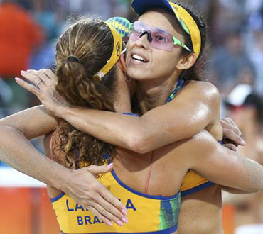 Com tranquilidade, a dupla brasileira de vôlei de praia Larissa e Talita conquistou nessa terça-feira (9) a segunda vitória na Rio 2016 ao derrotar a dupla norte-americana Lauren Fendrick e Brooke Sweat por 2 a 0. Com a vitória, as brasileiras lideram o grupo A e garantiram a classificação antecipada para a próxima fase da competição. Sem dar chances às norte-americanas, as brasileiras venceram o primeiro set por 21 a 16 e fecharam a partida com placar ainda mais favorável, de 21 a 13. Na quinta-feira (11), às 10h, Larissa e Talita voltam às areias de Copacabana para enfrentar as polonesas Kinga Ko osi ska e Monika Brzostek.
