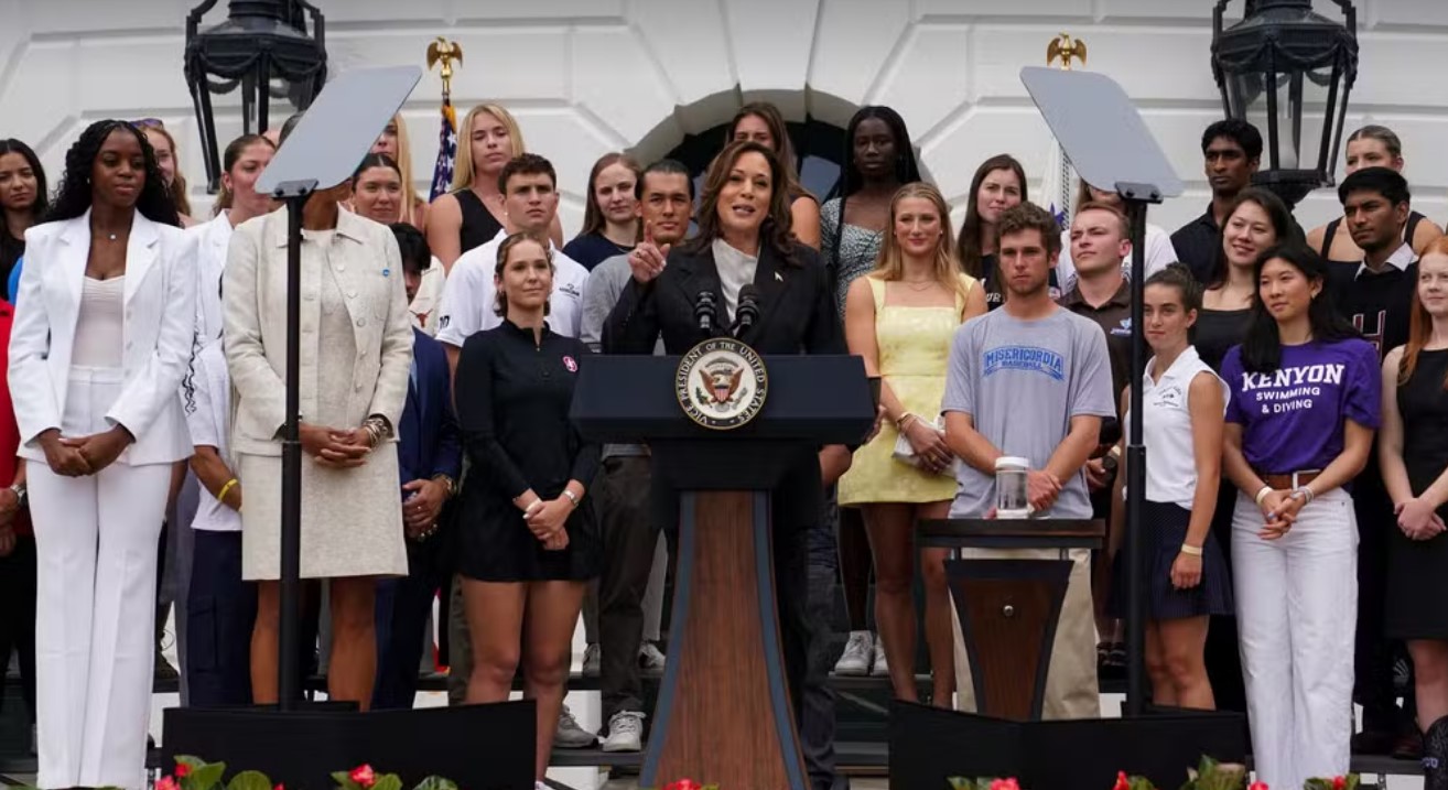 A vice-presidente dos EUA, Kamala Harris, apareceu publicamente pela primeira vez nesta segunda (22) após ter se tornado o principal nome do partido para assumir a candidatura democrata. Em breve discurso, no contexto de um evento da Associação Atlética Universitária Nacional na Casa Branca, em Washington, Kamala agradeceu Joe Biden pelo apoio e elogiou seu legado como presidente.