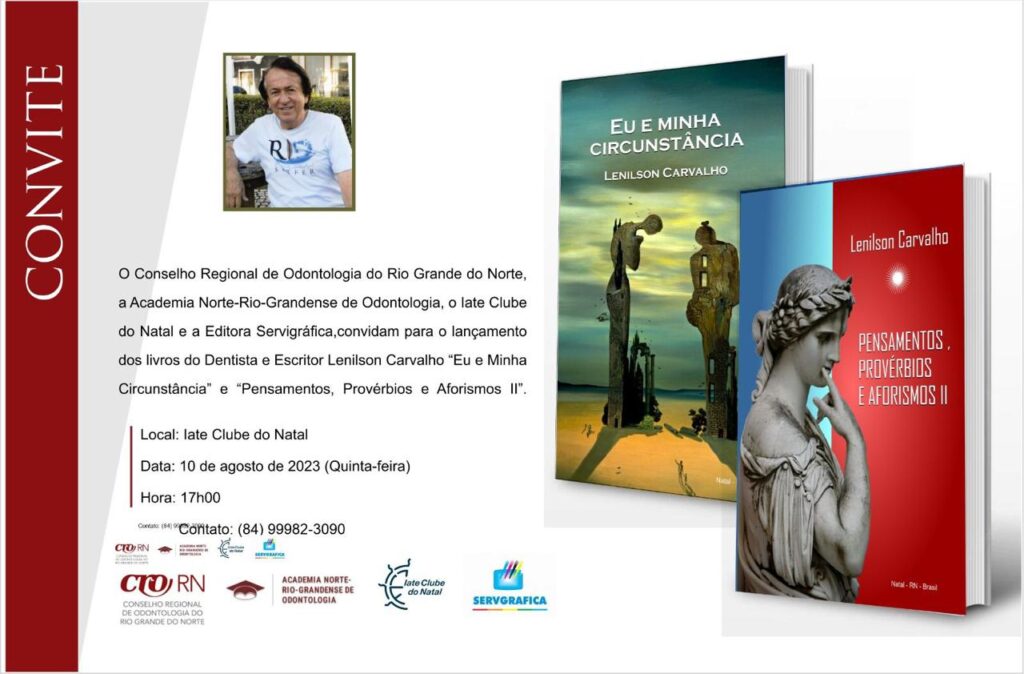 Dia 10 de agosto, às 17h, no Iate Clube Natal, o dentista e escritor Lenilson Carvalho irá lançar dois novos livros, “Eu e Minha Circunstância” e “Pensamentos, Provérbios e Aforismo II”.