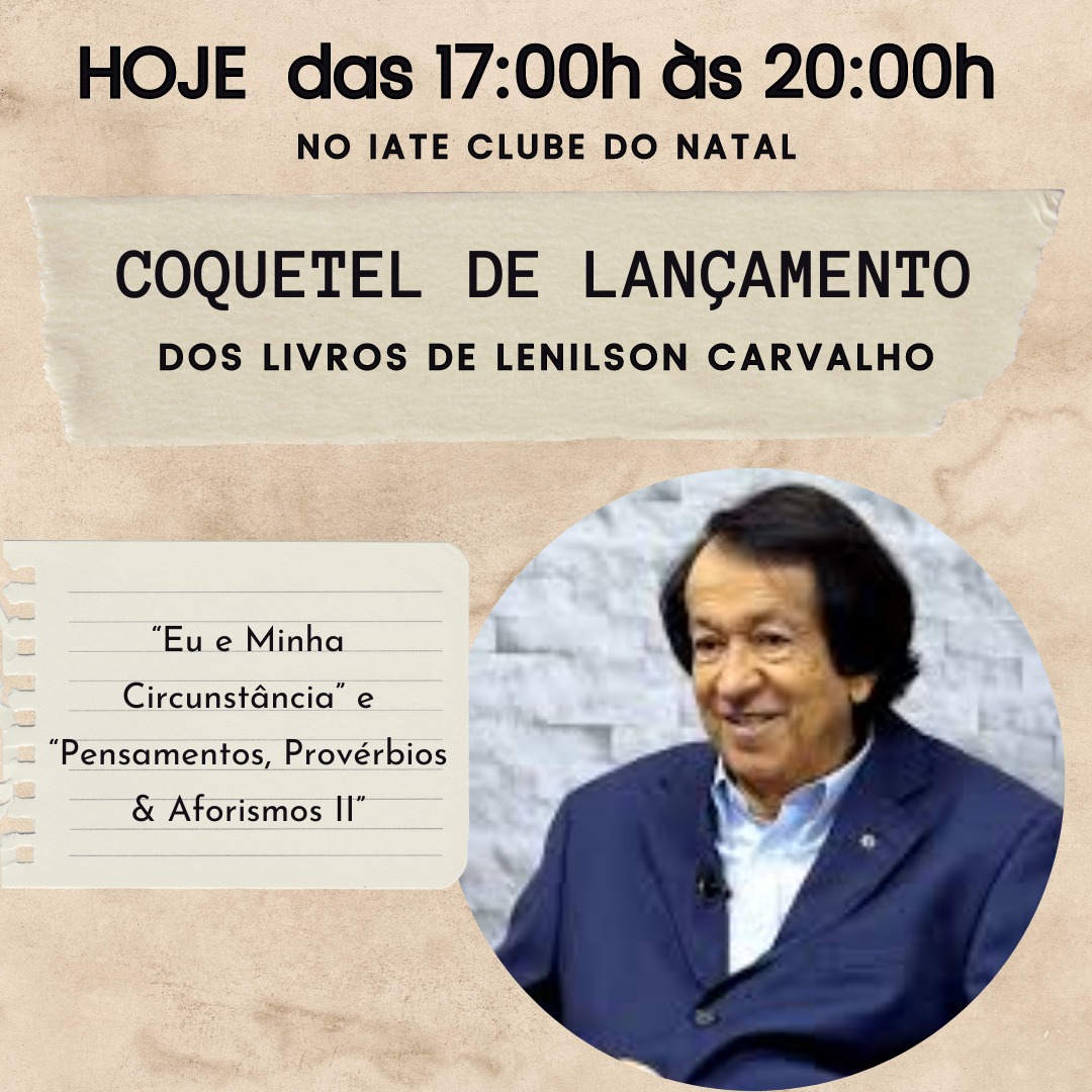 Lenilson Carvalho lança hoje (10) seus dois novos livros, “Eu e Minha Circunstância” e “Pensamentos, Provérbios & Aforismos II”, a partir das 17h, no Iate Clube Natal.