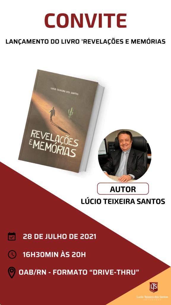 Lúcio Teixeira Santos lança seu mais novo livro, “Revelações e Memórias”, na próxima quarta-feira (28), às 16h30min, às 20h na OAB-RN. Devido a pandemia, o formato do lançamento será “drive-thru”.