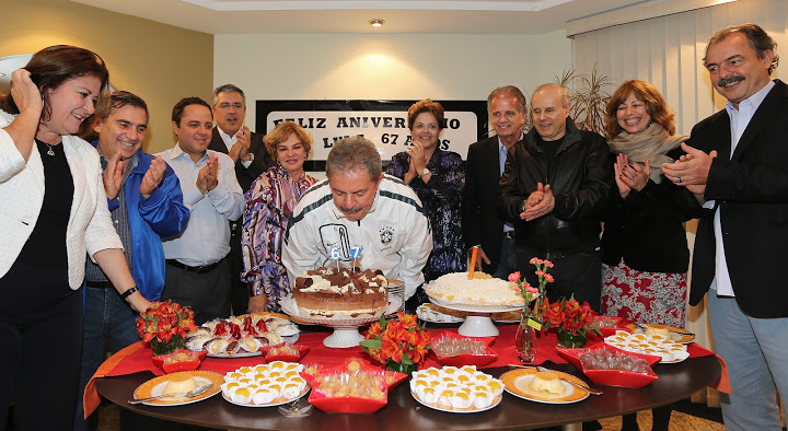 O ex-presidente Luiz Inácio Lula da Silva comemorou seu aniversário de 67 anos, completos neste sábado (27), ao lado de amigos e autoridades, como a atual titular do cargo, Dilma Rousseff. A comemoração ocorreu em seu apartamento, em São Bernardo do Campo, no ABC Paulista, na sexta-feira.