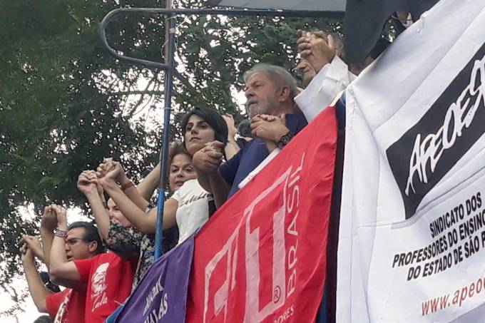 Condenado a 12 anos e 1 mês de reclusão por corrupção e lavagem de dinheiro, o ex-presidente Lula discursou neste sábado em frente ao Sindicato dos Metalurgicos, em São Bernardo do Campo, SP, após a missa em homenágem à ex- primeira dama Marisa Leticia. Em seu discurso para apoiadores, Lula atacou Deltan Dallagnol. Sem citar o nome do procurador, faz referência à confusa apresentação em PowerPoint em que Dallagnol tentou explicar as acusações contra Lula.