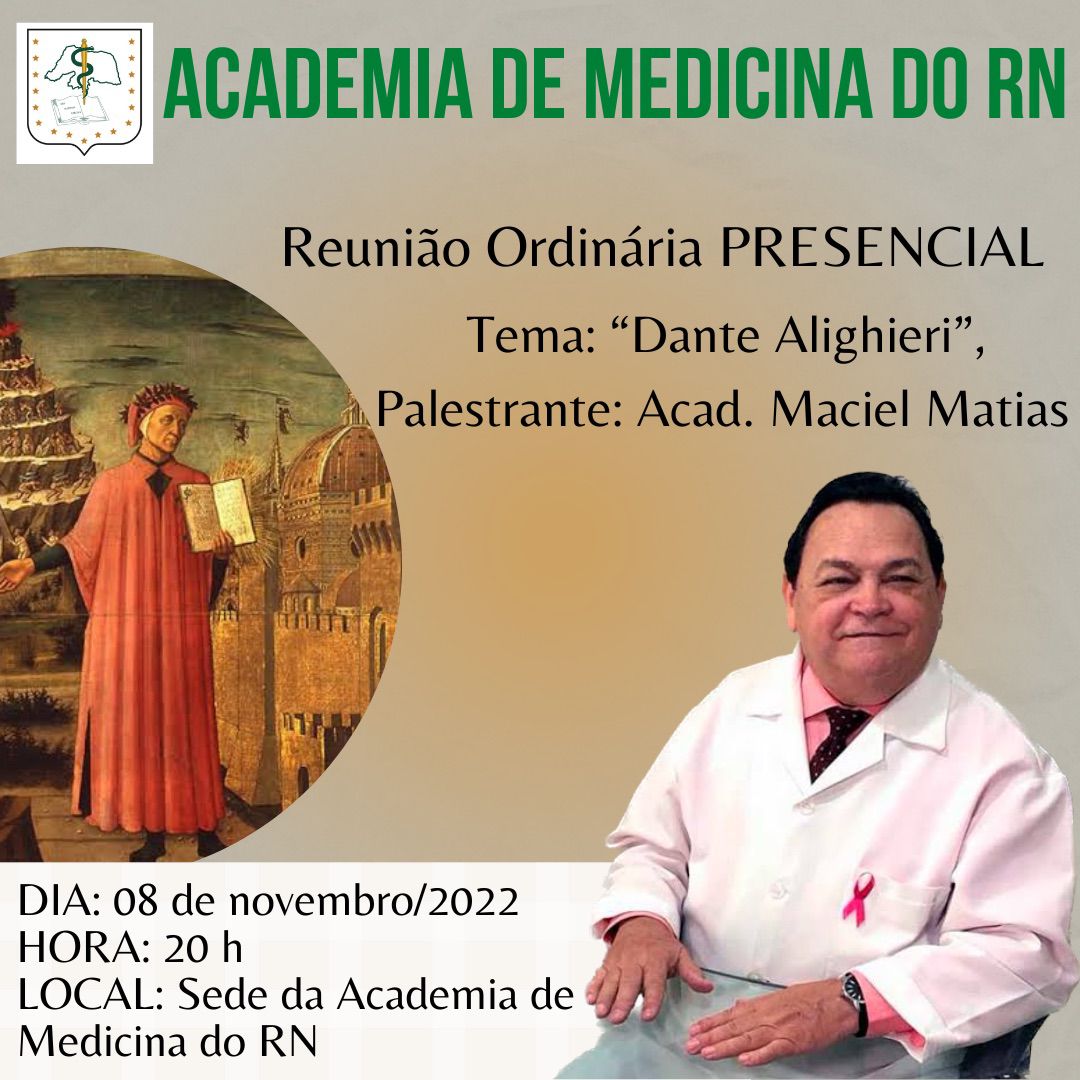 Nosso articulista, Maciel Matias realizará uma palestra sobre Dante Alighieri, hoje (08), às 20h na sede da Academia de Medicina do Rio Grande do Norte, na Ângelo Varela, 1019, no bairro de Tirol.