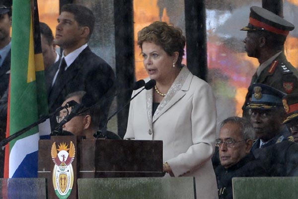 A presidente Dilma Rousseff discursou na manhã de hoje (10) na cerimônia de homenagem a Nelson Mandela em Joanesburgo, na África do Sul e disse que ele foi a maior personalidade do século 20. Dilma foi um dos líderes mundiais escolhidos para prestar tributo ao líder sul-africano nesta terça-feira (10). Barack Obama e o secretário-geral das Nações Unidas, Ban Ki-moon também discursaram. Os presidentes cubano Raúl Castro; da Índia, Pranab Mukherjee; da Namíbia, Hifikepunye Pohamba; e o vice-presidente da China, Li Yuanchao, também se pronunciaram na cerimônia.