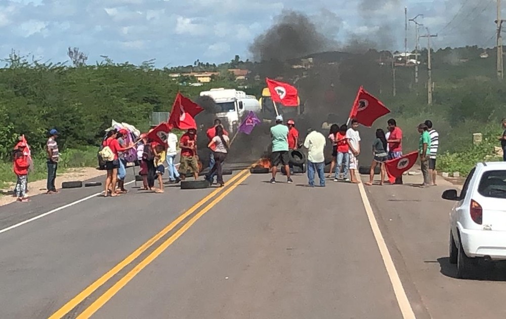 O movimento social também seria responsável pelo outro bloqueio, realizado no quilômetro 105 da BR-406 em João Câmara, no Agreste. No protesto, os manifestantes queimaram pneus e empunharam bandeiras do movimento.