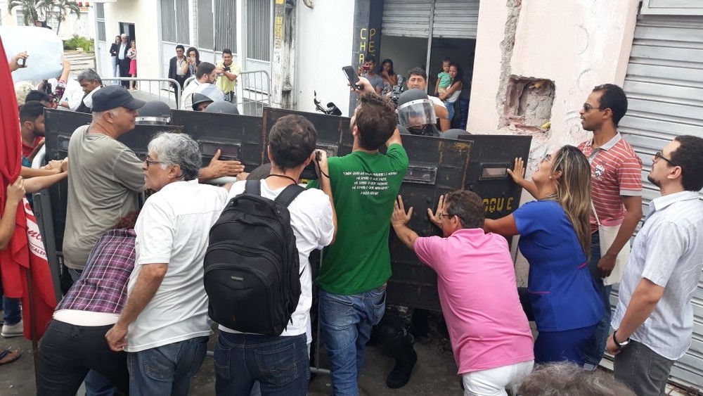As imagens também mostram que o ex-presidente da Casa, o deputado Ricardo Motta (PSB), teve dificuldades para entrar na Assembleia. Ele foi hostilizado e empurrado. A PM também precisou usar bombas de efeito moral para conter os manifestantes.