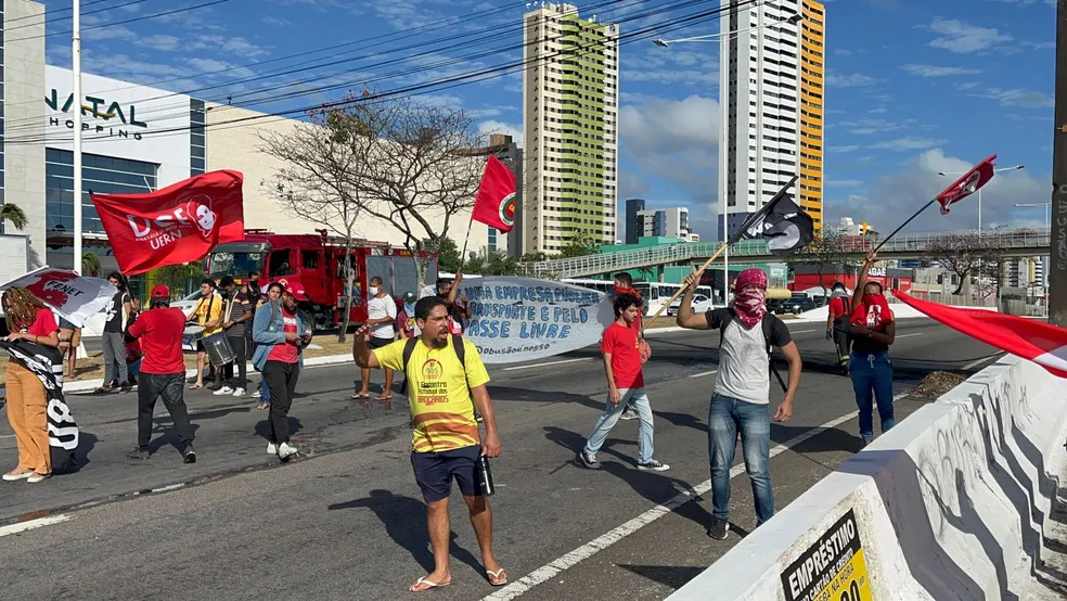 Manifestantes queimaram pneus e fecharam parte da BR-101, na altura do conjunto Mirassol, na Zona Sul de Natal, no início da manhã desta sexta-feira (17). O ato gerou congestionamentos na rodovia federal e em vias adjacentes, além de atraso em linhas de ônibus.