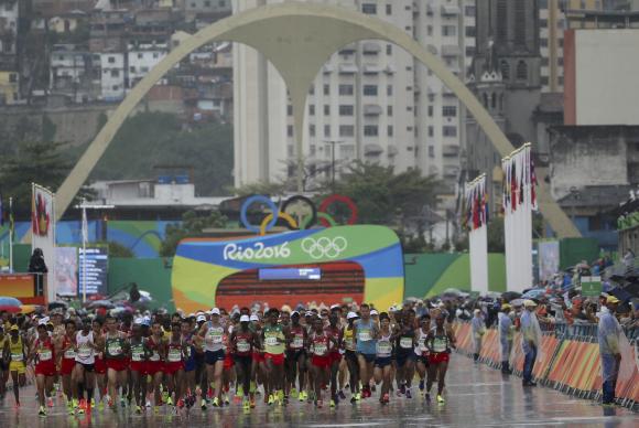 A prova da maratona masculina encerrou os eventos de rua dos Jogos Olímpicos Rio 2016. Mais de 150 atletas, entre eles três brasileiros, largaram às 9h30 do Sambódromo, para disputar a medalha de ouro do evento mais tradicional da Olimpíada. Apesar da chuva, várias pessoas acompanharam os primeiros minutos de prova, na Avenida Presidente Vargas, a última a que é possível assistir gratuitamente. A maioria delas usou as coberturas dos pontos de ônibus da via para se abrigar da chuva. O esquema de segurança envolveu um grande número de militares, soldados da Força Nacional de Segurança e agentes da Polícia Rodoviária Federal. Na Presidente Vargas, havia uma média de quatro agentes a cada dez metros, no trajeto da prova. O keniano Eliud Kipchoge, foi o grande vencedor, ganhando a medalha de ouro.