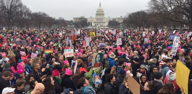 Milhares de pessoas, em sua maioria mulheres, iniciaram neste sábado a Marcha das Mulheres no centro de Washington, em protesto contra o presidente americano Donald Trump, um dia após sua posse. A expectativa dos manifestantes é de reunir mais de 200 mil pessoas, de todo o país, em reação ao presidente empossado. Pela manhã, Trump participou, ao lado de sua família e do vice-presidente Mike Pence, de uma cerimônia religiosa na Catedral Nacional de Washington, que tradicionalmente fecha os eventos de posse do novo presidente. Não houve discursos. Nas ruas, pessoas com gorros rosas na cabeça e placas de protesto contra Trump ouviram pronunciamentos que pediram mais respeito às mulheres, imigrantes, muçulmanos, gays, deficientes físicos e minorias. As atrizes Ashley Judd e America Ferrero, além do cineasta Michael Moore e outros ativistas, fizeram discursos contra o novo presidente.