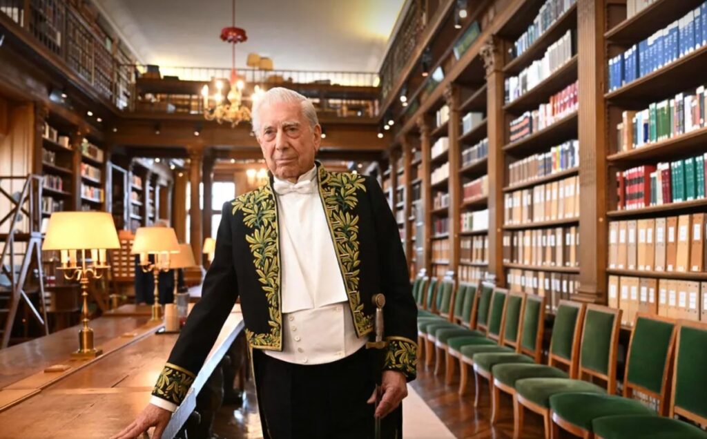 Vargas Llosa foi aceito quase que por unanimidade pelos acadêmicos e foi recebido em sua posse, em 2023, pelo “protetor” da Academia, o presidente francês, Emmanuel Macron.