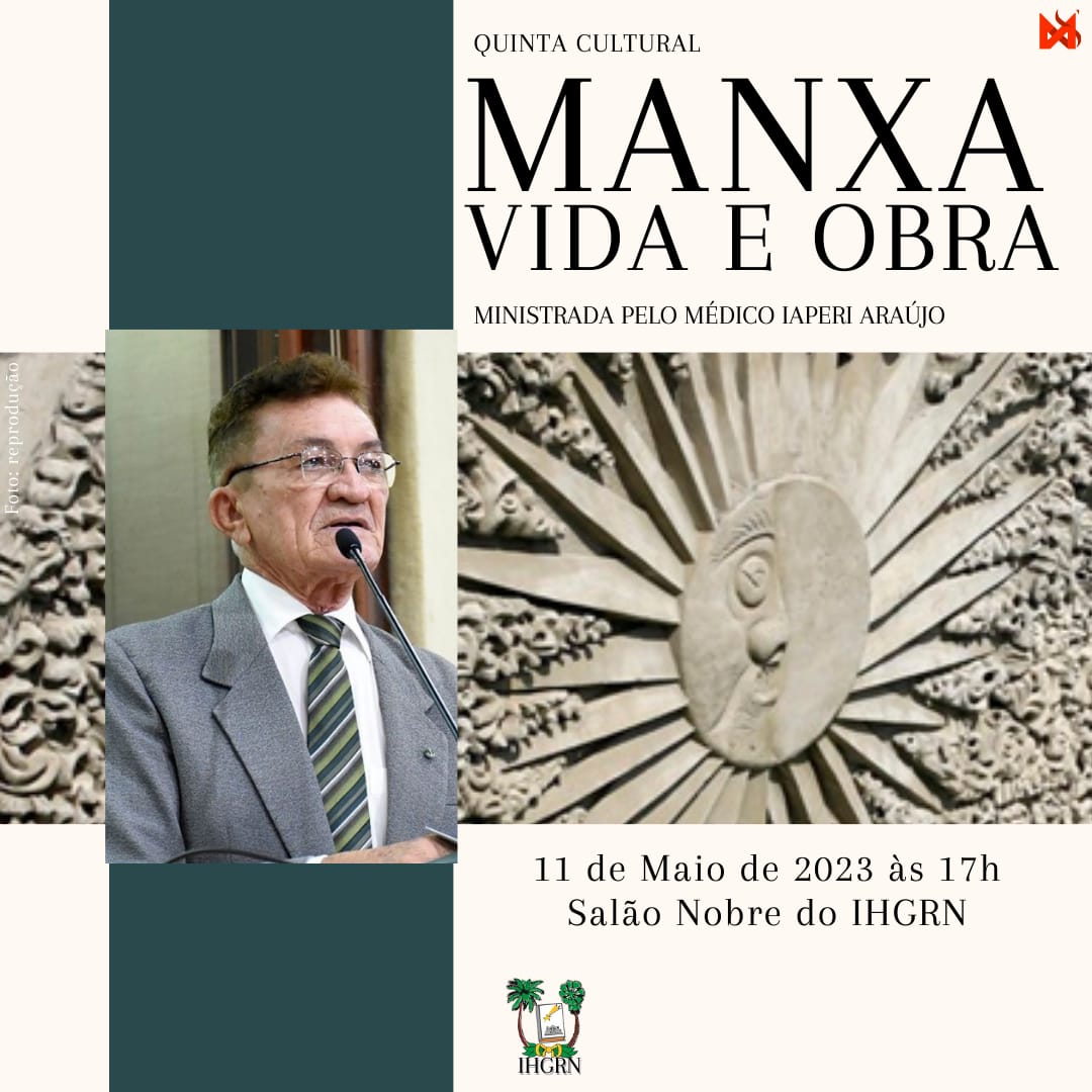 Nesta quinta-feira (11), o médico Iaperi Araújo ministrará uma palestra sobre “Manxa Vida e Obra” no salão nobre do Instituto Histórico e Geográfico do Rio Grande do Norte.