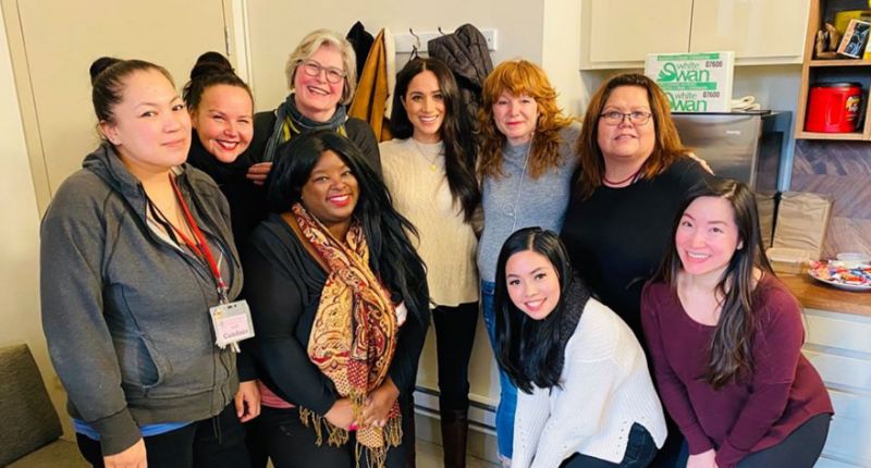 “Olhem só com quem tomamos chá hoje. A duquesa de Sussex, Meghan Markle, nos visitou para discutir questões que afetam as mulheres da comunidade”, diz a legenda da imagem publicada pelo grupo Downtown Eastside Women’s Centre no Facebook.