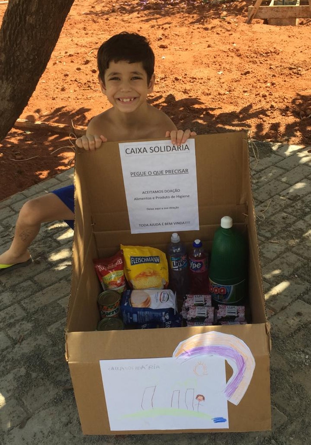 A contribuição vem de perto: dos moradores do prédio em que Lucas e a família moram em Bauru (SP). A ideia foi muito bem recebida pelos moradores, que toda noite reabastecem a caixa com quantos alimentos e produtos de limpeza puderem.