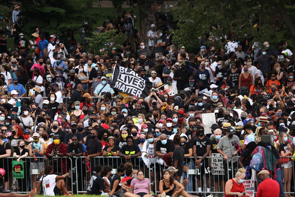 “Você pode ter matado o sonhador, mas não pode matar o sonho”, disse o reverendo Al Sharpton, um dos líderes do movimento pelos direitos civis, durante a concentração. Planejada há meses, a marcha foi alimentada pela prisão de Jacob Blake, alvejado pela polícia de Kenosha, no Wisconsin.