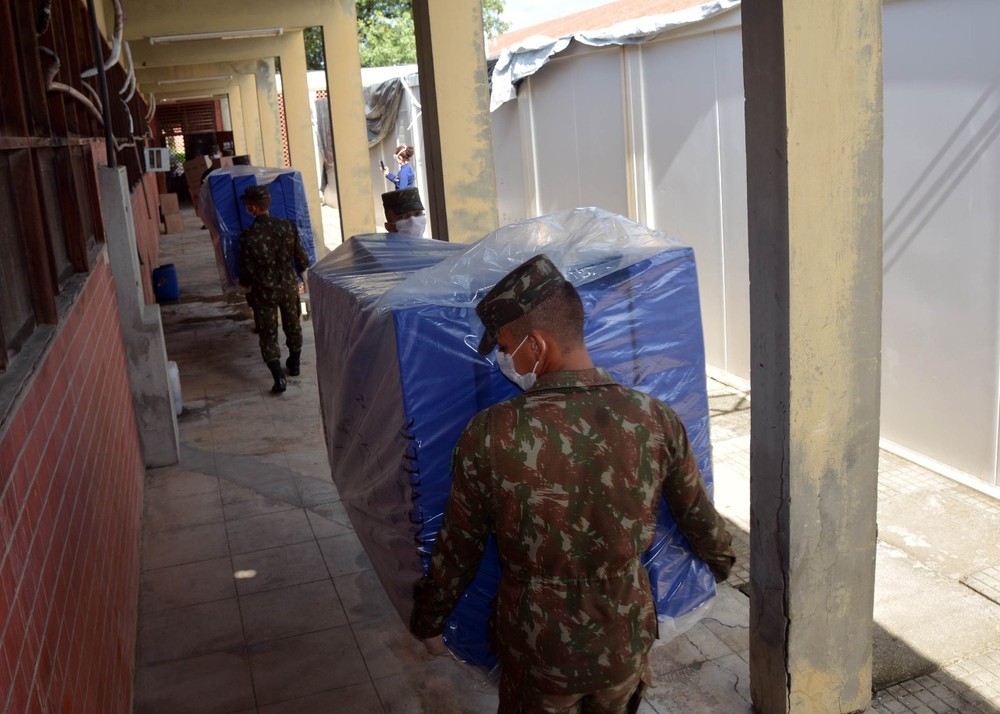 Militares do Exército, da Marinha e da Aeronáutica estão montando leitos e estruturas de apoio para o Hospital Regional do Seridó, em Caicó, no Rio Grande do Norte, que vão servir no enfrentamento ao novo coronavírus.