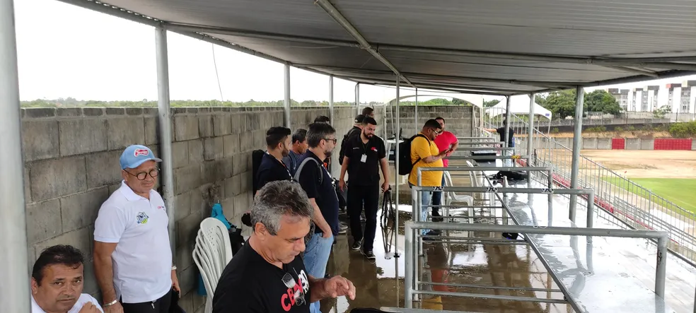 Durante a partida entre América e Santa Cruz realizada nesta quarta-feira (18) na Arena América, o Corpo de Bombeiros chegou a determinar a interrupção das transmissões da imprensa esportiva por falta de segurança.