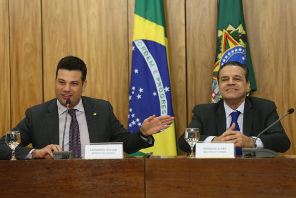 Os dois ministros concederam entrevista coletiva na noite desta segunda-feira após reunião com Temer, no Palácio do Planalto. Foi o primeiro encontro da equipe do novo governo para discutir especificamente os preparativos para a Rio 2016. Além de Picciani e Alves, participaram do encontro os ministros da Defesa, Raul Jungmann, da Casa Civil, Eliseu Padilha, da Justiça e Cidadania, Alexandre de Moraes, e do Gabinete de Segurança Institucional da Presidência, general Sérgio Etchegoyen.