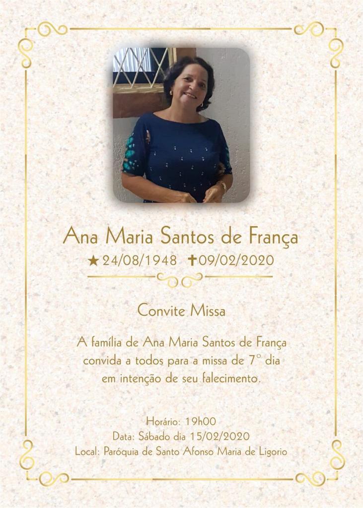 Missa de sétimo dia de Ana Maria Santos de França é realizada na Igreja de Santo Afonso
