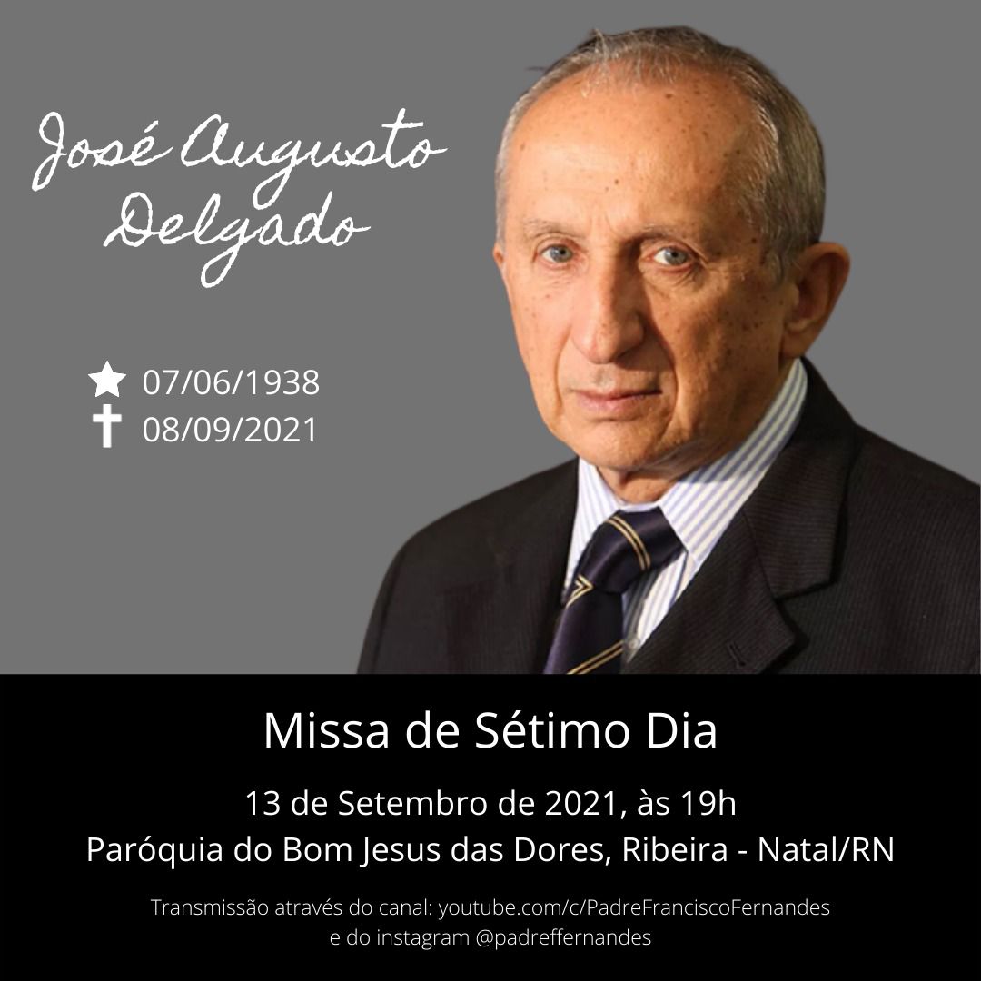 Missa de Sétimo Dia de José Augusto Delgago será celebrada hoje (13), às 19h na Paróquia do Bom Jesus das Dores, no bairro da Ribeira.