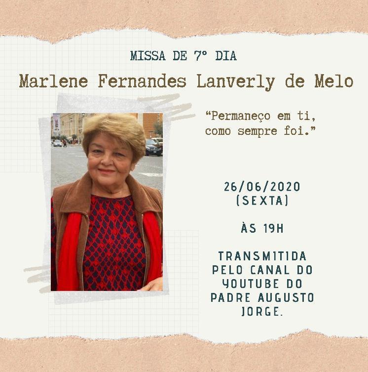 A Missa de 7º dia de Marlene Lanverly será realizada hoje (26), às 19h no canal do YouTube do Padre Augusto Jorge.