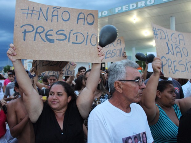A população de Afonso Bezerra, na região Central do Rio Grande do Norte, se manifestou nessa quinta-feira (16) contra a construção de dois presídios no município. O plano do governo do RN era erguer as novas unidades em Santana do Seridó, mas, depois de protestos da população, a mudança para Afonso Bezerra foi anunciada na segunda-feira (13).