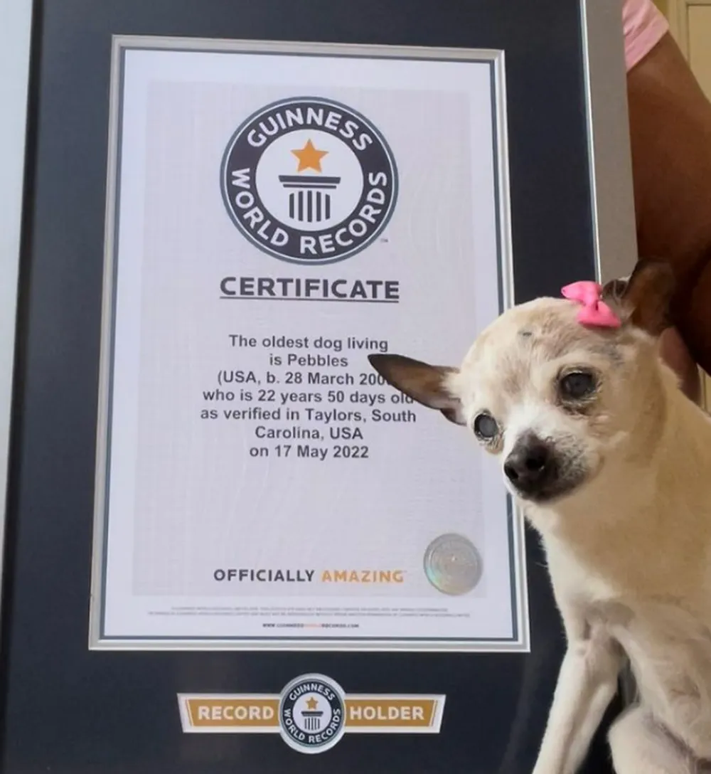 Pebbles, da raça Fox Terrier, tinha 22 anos e vivia em Taylor, no estado na Carolina do Sul, nos EUA.