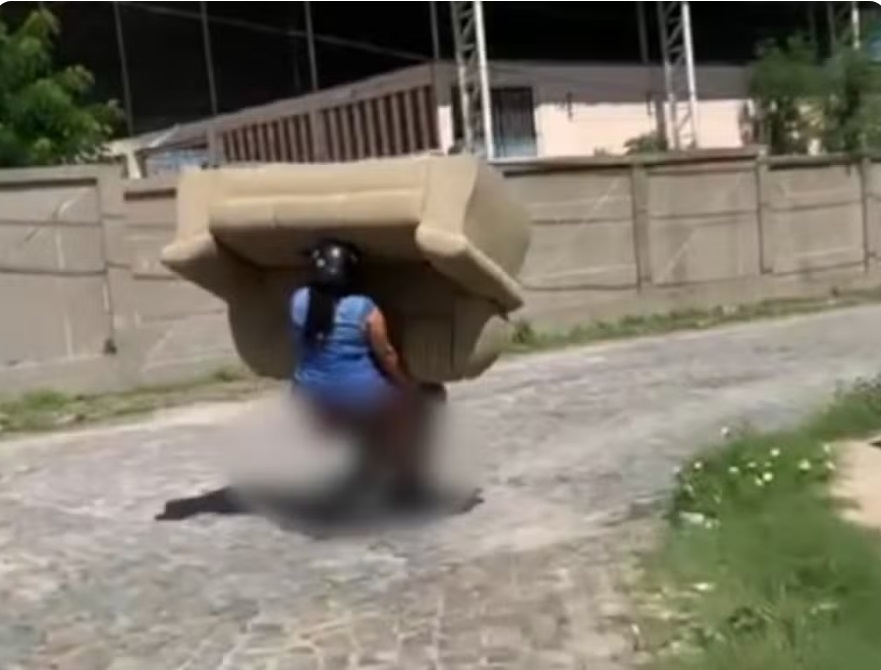 Nos vídeos, é possível ver que havia uma pessoa pilotando a moto, enquanto uma mulher estava no assento passageiro, segurando e equilibrando o sofá de cabeça para baixo.