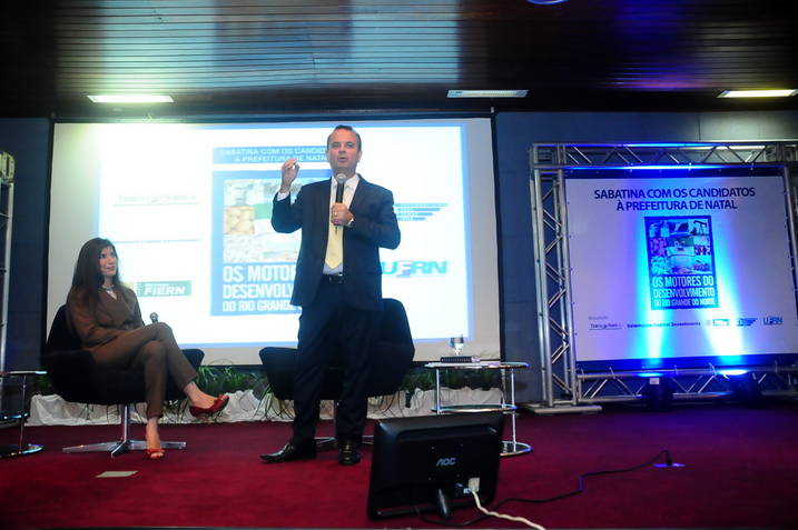 O deputado federal Rogério Marinho, candidato a prefeito de Natal pelo PSDB, participou na manhã desta segunda-feira (13) da sabatina promovida pelo projeto Motores do Desenvolvimento. O evento foi realizado no auditório do CTGás e foi organizado pela Fiern, Fecomércio, Tribuna do Norte, UFRN e Salamanca Capital.