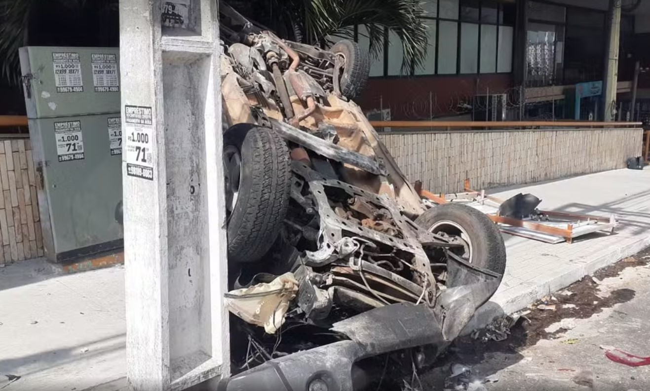 Em seguida, o condutor derrubou uma placa de um posto de combustíveis, entrou na Avenida Antônio Basílio, onde atingiu outros pelo menos mais duas motos e um carro, e atravessou o canteiro central, parando apenas na calçada de um supermercado, após capotar.