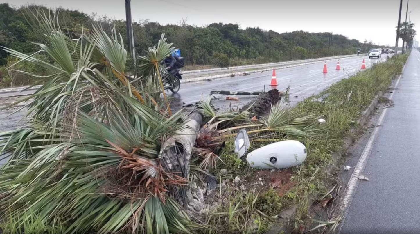 “Perdendo o controle, ela arrancou a primeira palmeira, colidiu no primeiro poste, bateu no segundo poste e veio capotando cerca de 200 a 300 metros até esse local”, disse o policial.