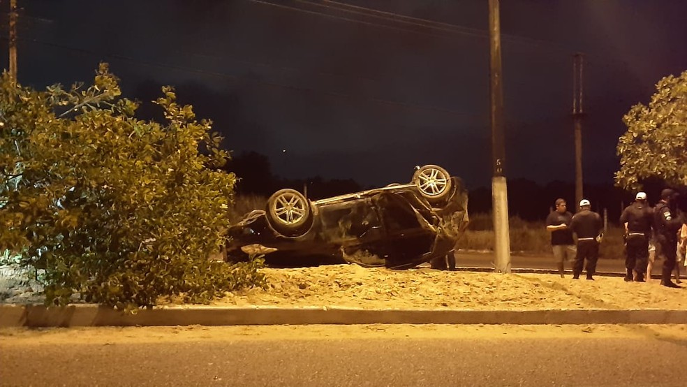 Um carro capotou na noite de sexta-feira (23) após o motorista perder o controle e sair da pista num trecho da Avenida Prefeito Omar O’grady, conhecido como Prolongamento da Prudente, na Zona Sul de Natal.