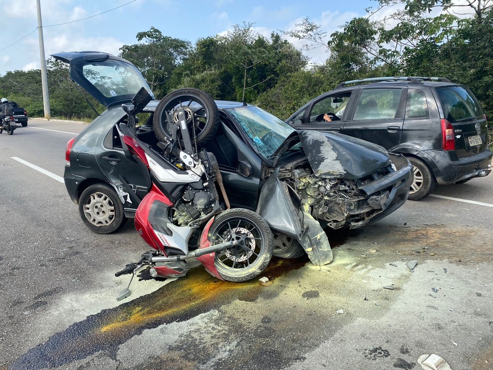 O motorista do carro e o motociclista foram socorridos pelo Serviço de Atendimento Móvel de Urgência (Samu).