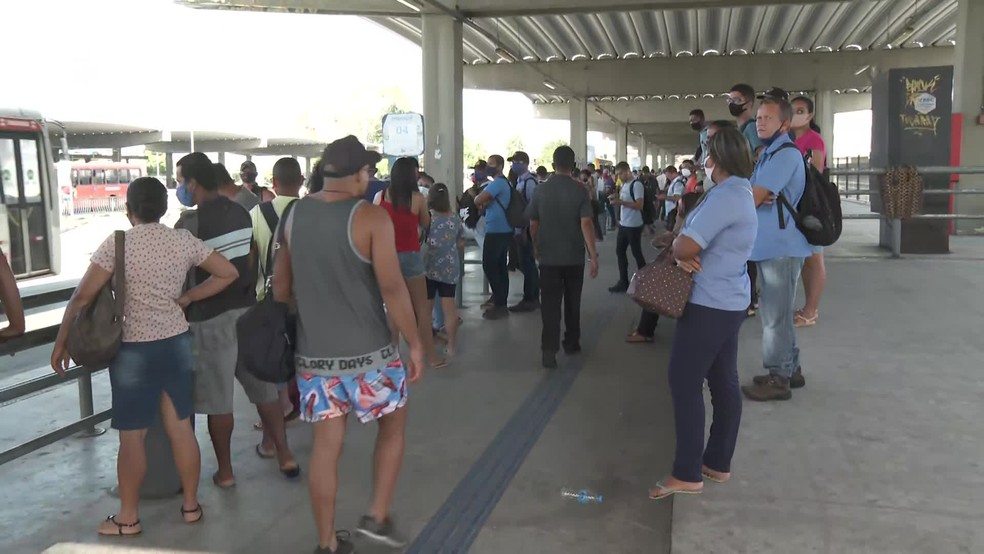 Em alguns terminais, poucos ônibus chegaram e as pessoas se aglomeraram para poder entrar nos coletivos que estavam disponíveis. Um problema que ficou ainda pior por causa do risco do contágio com o novo coronavírus.