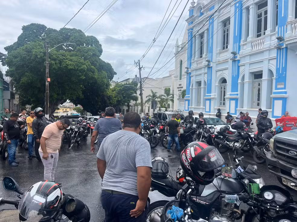 Motoristas e motoentregadores por aplicativo realizaram um protesto na manhã dessa terça-feira (14) contra um projeto de lei nacional que visa a regulamentação dos serviços em todo o país.