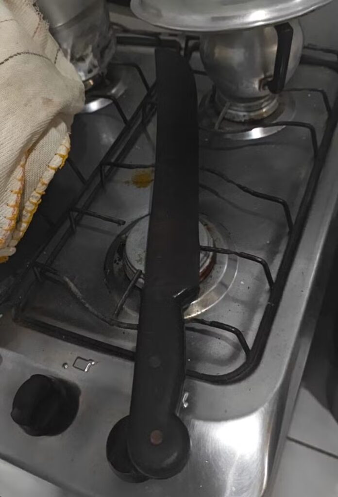 Ao entrarem na residência, os militares localizaram um facão que teria sido utilizado para ferir a vítima e apreenderam a arma.