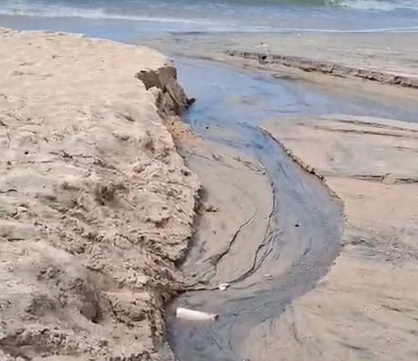 Assim, 20 minutos depois, conseguiram perceber uma ligação clandestina do esgoto que dava na rede de drenagem, que é para escoar água da chuva. O ponto final do despejo era areia da praia – e seguia para o mar.